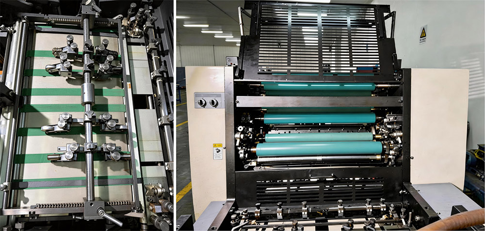 3) Le contrôle pneumatique de l'embrayage et des rouleaux encreurs à pression d'embrayage rend le fonctionnement de la machine plus fiable et plus stable.